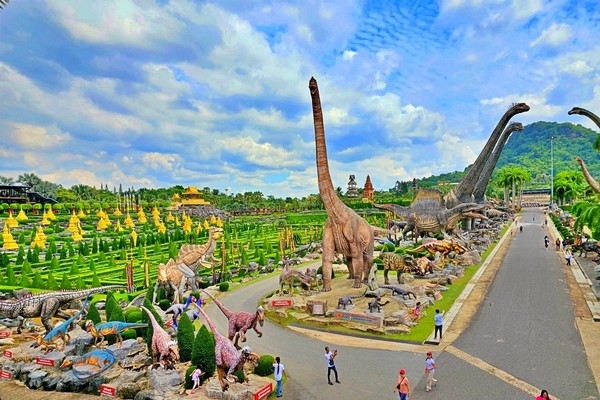 以歐洲花園和泰國文化為靈感打造:東芭樂園(遊園車+ 大象表演+⺠俗⽂化秀+蘭花園+恐龍谷) 。