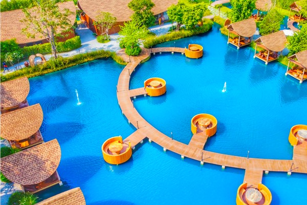 被譽為迷你版馬爾地夫,到處充滿著海島風的景象,怎麼拍都好看,斜頂式的建築一座座拍過非常驚艷。漂浮咖啡廳座位加上河池造景,超有馬爾地夫的氛圍,以視覺上來說相當吸睛有特色,因此吸引不少遊客朝聖。