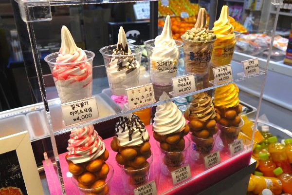 【東門傳統市場】1945年光復以後,濟州東門市場正式形成,是未來濟州商圈的中心地。東門市場保留著傳統市集的特點,與大型超市相比,商品種類繁多,價格低廉,且能少量購買。