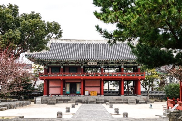 【觀德庭】濟州道內歷史最為悠久的建築物之一,於1963年1月21日被指定為第322號寶物,朝鮮時代世宗30年(1448年)牧使辛淑晴為訓練士兵所創建的。觀德之名取義自「射箭的人平常為端正心思,培養出眾的德行」,觀德亭的橫樑上刻劃著十長生圖、赤壁大捷圖、大狩獵圖等高格調的壁畫。