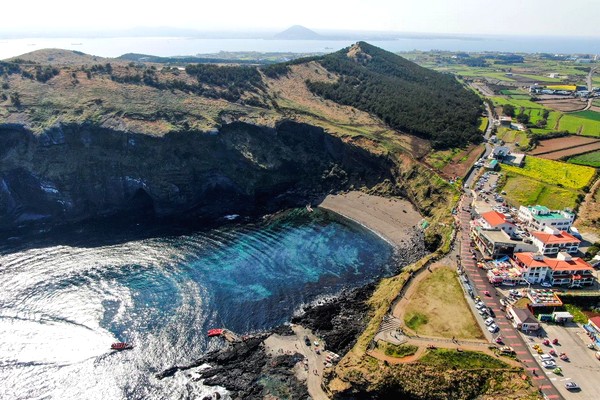 【島中之島~牛島】由於樣子很像是一頭臥牛伸著頭的樣子,而取了牛島這樣的名字。從北濟州郡舊左邑終達里的海岸觀看,可以一眼從牛頭看到牛尾,欣賞牛島特別的模樣。島約長3.8公里,海岸線總長約17公里,面積605公頃。牛島大約到了朝鮮肅宗23年(1679)設置了國有牧場之後才開始有人登島,開始有人居住則大約是從150年前開始。當時為了管理及飼育國馬,開始有人在島上往來,到了憲宗10年(1844)金石麟進士一行人入島後才正式有人在島上定居。牛島擁有地勢緩和的沃土、豐富的漁場、牛島八景等上天賜予的良好天然條件,再加上濟州海女與石牆路等,讓來這裡的遊客就可以體驗到只有濟州島才有的獨特傳統文化與自然環境,就好比是個縮小版的濟州島。這裡也是著名韓劇的取景地,崔智友的《連理枝》和全智賢的《觸不到的戀人》都在牛島取過景,而韓國影后全度妍的《人魚公主》絕大部分場景都是在牛島拍攝的,牛島已然成為代表性的旅遊景點之一。