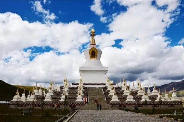 【稻城白塔】藏語叫郎傑曲登。據說,當年釋迦牟尼涅槃之時,眾多眷屬祈求世尊法身長駐,佛陀便囑修尊勝塔,並親自加持開光,以此代表法身。稻城白塔純四方形的佈置是稻城白塔的底座,塔尖,塔基座安放著一排排的轉經輪,以供藏民虔誠膜拜。 也稱為白塔寺,為甘孜州最大的白塔。