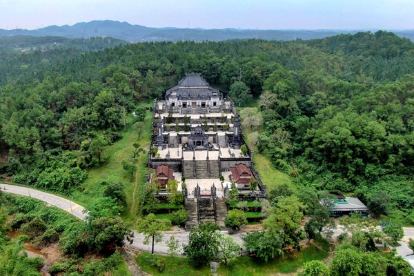 相傳阮朝皇帝在位時即開始替自己死後建造的安居之所,此為啟定皇帝耗費11年歲月建築而成的身後居所,西洋式的建築配有馬賽克的裝飾,處處可見到其深受法國殖民的影響,然而從皇陵的建築、設計更可以看出當時末代皇帝的性格特色。