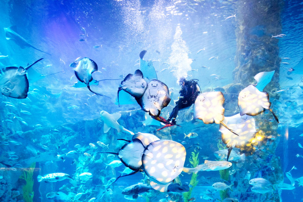【樂天世界水族館】重現全球五大洋生態的超大型水族館,展示650種、約5.5萬隻海洋生物。可近距離體驗餵食企鵝、觸摸水母等互動活動,是親子旅遊與海洋迷的夢幻樂園。