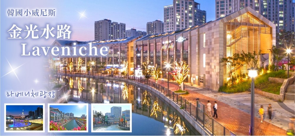 【金光水路】以威尼斯為靈感打造的浪漫水上街區,長達1.7公里的金光水路兩側林立咖啡館與商店。夜晚燈光倒映水面,可搭乘「月亮船」漫遊運河,感受異國風情。