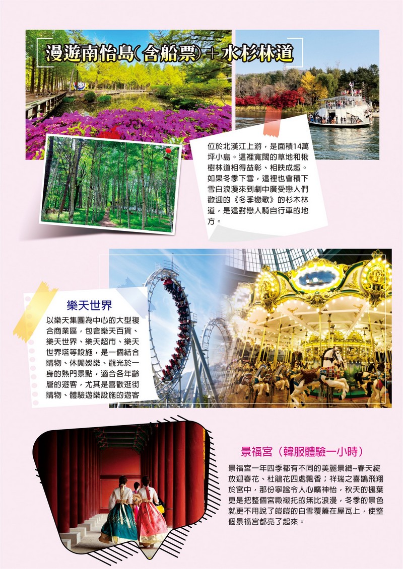逍遙自得遊韓國~南怡島+水杉林道.蠶室樂天商圈自由逛街.聖水洞.廣藏市場.一日自由活動 無購物五日
