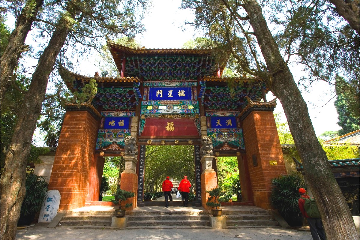 【金殿風景區】昆明金殿名勝區,因大殿用黃銅鑄成,陽光照耀下,光芒四射,映得翠谷幽林金光燦爛,故而得名,又稱為銅瓦寺。名聲顯赫的金殿屬於道教太和宮的一部分,始建於明代(1602年),是中國四大銅殿之一,且保存最完好。