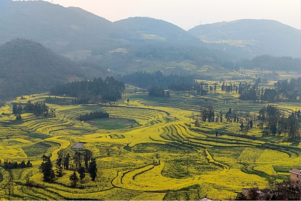【牛街梯田】牛街梯田位於羅平縣城西南約40公里處,是雲南著名的高原梯田景觀之一。這裡的梯田依山勢層層疊疊,蔚為壯觀,春季灌溉時水光瀲灩,倒映著天空與雲影,宛如大地的畫布。每到油菜花盛開時節,金黃色花海與層層梯田交織,形成獨特的壯麗景致,吸引無數攝影愛好者和遊客前來賞景。