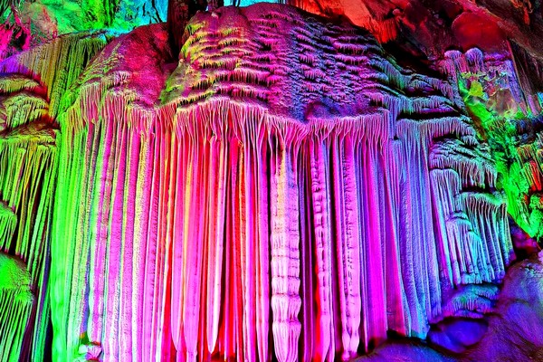【銀子岩】風景區集自然、人文景觀於一體、千畝桃林、錯落其間、呈現一派迷人的田園風光,銀子岩屬層樓式岩洞、包含了下洞、大廳、上洞三部、匯集了不同年代發育生長的各種類型的鐘乳石、特色景點以音樂石屏、廣寒深宮、雪山飛瀑『三絕』和佛祖論經、獨柱擎天、混元珍珠傘『三寶』等景點為代表,栩栩如生。