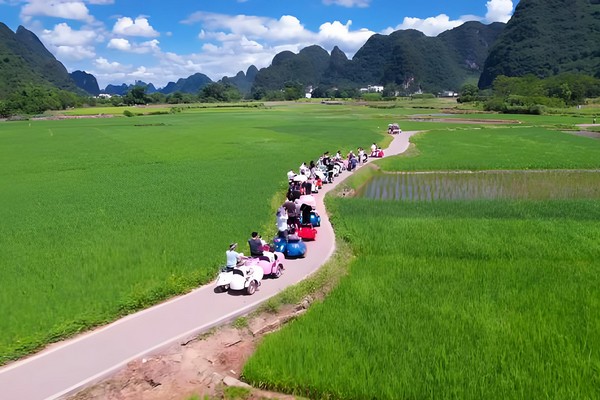 挎斗車悠閒遊山水風光】無騎行,不陽朔!一直以來,陽朔都堪稱中國最適合騎車遊覽的地方。一是因為水墨畫式的騎行環境實在讓人難以抗拒;來陽朔一定要騎行復古挎斗車欣賞風景如畫的田園風光在陽朔,騎行復古挎斗小車是一種很受歡迎的旅遊方式,沿著田野間的小路,欣賞陽朔山水田園的美景,享受騎行的樂趣