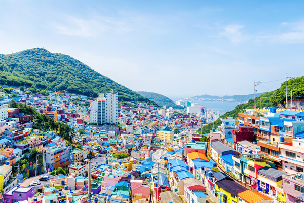 【甘川洞壁畫村】是位在山腳下,呈階梯式聚集在一起的美麗村落,被人們稱為釜山的馬丘比丘。在文化村裡,旅客可以看到各式主題的小房子,以及巷弄內的造型擺設等,這些都是村民們的創意,旅客也可以跟著村民來場有趣的體驗觀光呢!