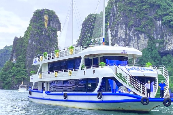 【皇后號Queen Cruise 日遊冷氣船】以五星級標準的歐洲標準服務在這裡,您可以充分享受到從接待處到精心準備的周到服務使您的旅遊變得獨特而難忘。Queen Cruise 5 星郵輪,最多可容納99 位客人,擁有現代化的設計、設備、豪華的內飾、可欣賞下龍灣全景的餐廳以及非常壯觀的戶外露台空間,船上精心設計網美拍照攝影點。