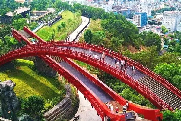 【浪漫錦鯉橋 Koi Bridge #IG 熱門打卡地】越南峴港有座美麗的巨手黃金橋,而在北部廣寧省太陽世界的日式花園哩,也建成一座浪漫又獨特的日式錦鯉橋,錦鯉在日本又稱為「神魚」,象徵吉祥、幸福,建築設計更是代表著和諧、親密的兩個人,也象徵著美好的愛情。