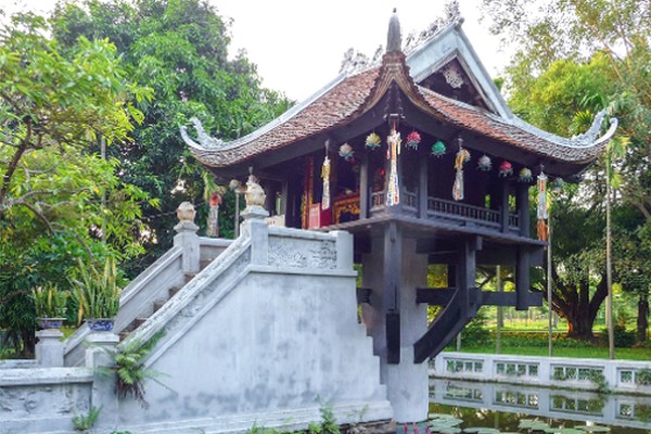 【一柱廟】是李朝時的建築,而它的造型格調有如一朵從水中伸向天際的蓮花,後方有一株菩提樹,是印度總理尼赫魯於西元1958年訪問越南時所親自栽種的。