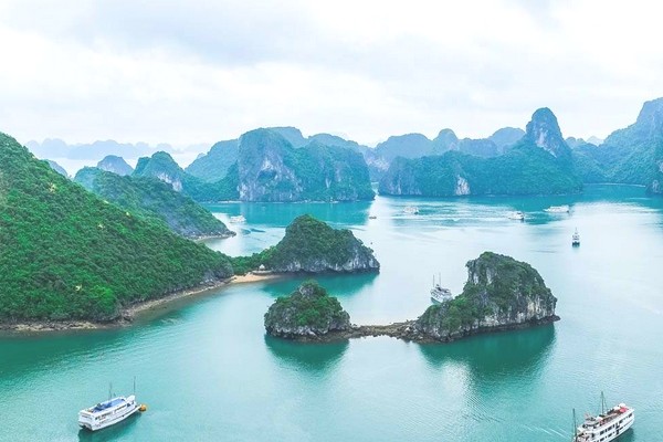 遊船停靠英雄島登島參觀TITOP地標,島邊沙灘呈現灣月芽狀、砂粒雪白,每天潮水漲落把它沖洗乾淨。登上約400階的石階,即可到達島上山頂上觀景台,鳥瞰整體的下龍灣風景,你可發現每個島嶼都有不同的形狀,像一座天然的樓台,山石嶙峋和幽暗的山洞有著許多神話故事傳說,讓人如置身於蓬萊仙境。